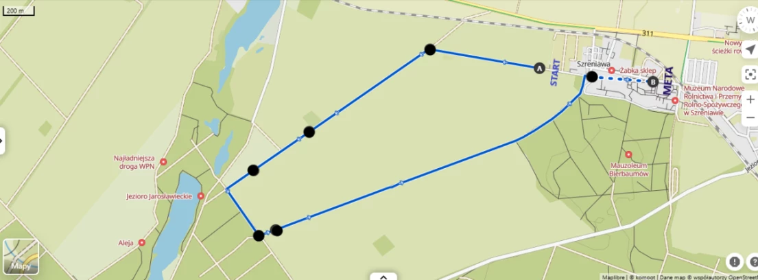 Trasa biegów dla dorosłych oraz marszu NW przebiega po wyznaczonej pętli (około 5,5 km).